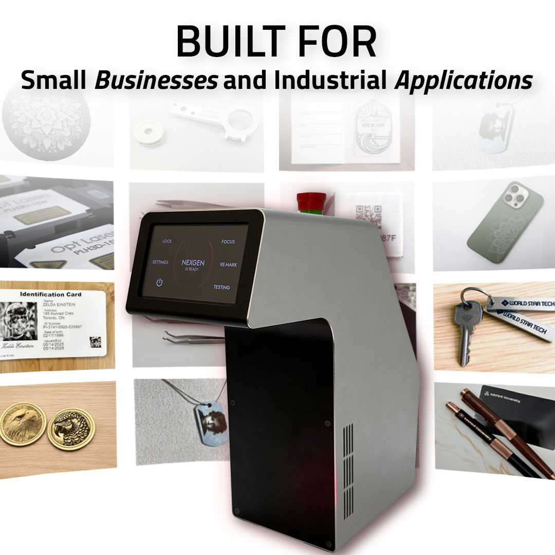 NexGen Laser Marker delivers high-precision laser engraving on a wide range of metals. Advanced MOPA fiber laser technology enables deep, permanent, high-contrast marking, even on coated and hard-to-mark metal surfaces.